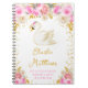 Ce carnet mignon et fantaisiste présente un élégant arrangement floral de cygne et de roses roses roses avec des confettis de parties scintillant en faux or. Le texte combine écriture manuscrite et polices sans serif pour un look élégant et moderne. Il peut être personnalisé avec les statistiques de naissance de votre bébé, comme le nom, la taille, la date et l'heure de naissance, ou si vous souhaitez le donner comme cadeau de douche vous pouvez modifier et supprimer du texte. Graphiques par heyiamalice et SunflowerDayLove