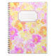 Customisé teinture à cravate fleurie mode design carnet motif avec autocollant de nom d'école, pour beaucoup de pensées, rêves, idées et connaissances. Teinture à cravate florale d'orchidées koréenne moderne motif en rose saturé, jaune, pêche, couleur orange. Décor de maison motif de style Shiburi teint. Motif de fleur Tiedye, couleurs de cravate arc-en-ciel