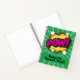 Choisissez parmi dix intérieurs de page différents - grands carreaux, cahier de croquis, écriture manuscrite, papier quadrillé, entre autres. Ce cahier peut être personnalisé avec votre nom et titre et comporte un autocollant coloré de style pop art "POW" et un fond vert. Idéal comme cadeau pour la rentrée scolaire ou comme cadeau de fin d'année.