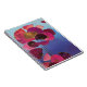 Cette oeuvre vibrante présente des fleurs abstraites et stylisées dans les tons rose, bordeaux et or contre un arrière - plan bleu doux, mêlant élégance et créativité dans une composition captivante.