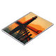 A bold and serene illustration of a lighthouse at sunset, captured in warm orange and red tones. The design features strong silhouettes of a lighthouse, pier, and distant watchtower, reflecting over calm water with a graphic, vintage-inspired style. Ideal for lovers of coastal scenes and retro aesthetics.