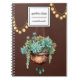 Pour les momas plantes et les amoureux de la nature. Ce carnet en spirale présente un succulent suspendu avec du cuivre et du bronze et un aqua riche, des plantes verts ornés de perles d'or et de pierres turquoise. Ce carnet présente un design adorable de succulents mignons nichés dans un charmant hangar turquoise. Ce délicieux journal en spirale est parfait pour ceux qui apprécient à la fois la beauté de la nature et la joie d'une touche personnalisée dans leur quotidien journalier. Un chapelet de perles dorées est également drapé sur les côtés gauche et droit du carnet. Cela en fait un excellent cadeau pour les amis, la famille ou les collègues qui sont passionnés de plante, ou un régal spécial pour vous-même. Choisissez simplement le texte et la police de votre choix. Bon appétit !