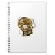 Tête conceptuelle, mécanique, humaine avec manomètre antique et engrenages métalliques contre arrière - plan industriel gris. Style Steampunk.