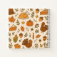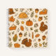 Festive Fall Doodles: A vibrant, repeating pattern illustration featuring all the essentials of an Autumn harvest and Thanksgiving dinner, including cartoon turkeys, pies, pumpkins, and foliage, all rendered in a cheerful, hand-sketched style with a cozy color scheme.