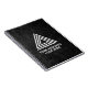 Faux leather notebook to promote his small business.