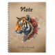 Tigre de Steampunk avec illustration Rose. L'image présente un gros plan de la tête d'un tigre en profil, rendu dans un style art numérique. Le tigre a des rayures orange et noire, avec de la fourrure blanche autour du visage. Une épine métallique à la vapeur ornée de engrenages et de courbes roses autour du cou du tigre. L'arrière - plan est d'une couleur beige douce aux motifs floraux. L'ambiance générale est un mélange de fantaisie et d'élégance mécanique.