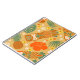 Empreinte tropicale hawaïenne avec teintes ou oranges, dorés, verts et jaunes. Impression amusante qui incorpore des têtes de totem tiki, fleurs d'hibiscus et feuilles de palmiers.
