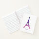 Ce design présente une tour Eiffel abstraite en violet et rose.