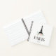 Ce beau carnet est orné de la Tour Eiffel aux couleurs pastel rose et blanc avec beaucoup de feuilles verts, et du mot "Paris" dans un élégant texte moderne. La couverture arrière est recouverte de rayures noires et blanches chic.