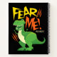 Rex rejoint le gang dans "Toy Story 4" de Disney/Pixar ! Cette illustration simplifiée de Rex a des marques de griffes de dino et les mots "Fear Me! (S'il vous plaît !)" écrit ci-dessus.