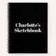 Design minimaliste noir et blanc personnalisé nom personnalisé sketchbook / carnet. Texte blanc entièrement personnalisable sur arrière - plan noir en couleur unie. Les couleurs sont modifiables.