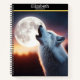 Carnet Un loup hurle sous la lune lumineuse au crépuscule