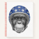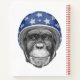 Ce dessin présente le portrait d'un chimpanzé dans un casque de moto patriotique.