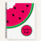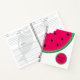 Un classeur de recettes décoré d'une seule image d'une tranche de pastèque rouge vif et juteuse avec un morceau sorti, sur un arrière - plan blanc. L'image couvre l'avant, le dos et la colonne vertébrale du classeur. Sur la colonne vertébrale et la couverture avant est un cercle coloré correspondant que vous pouvez personnaliser avec votre nom. Le design est simple et moderne.