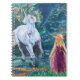 Carnet de spirale avec l'illustration imaginaire d'une licorne qui traverse la forêt et rencontre une jeune fille. "Rencontre dans les Bois" copyright : Dominic A. White. Tous droits réservés.