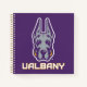 Le logo de la mascotte de l'Université d'Albany Great Dane présente une représentation stylisée de la tête d'un grand Danois. Le chien est illustré de lignes vives et audacieuses en violet et gris, lui donnant une expression féroce et confiante. Les oreilles sont hautes, symbolisant la vigilance et la force. Sous la tête du Grand Danois se trouve le mot "UAlbany" écrit en caractères d'or gras et bloquants, surligné de violet, renforçant l'image de marque de l'université. Cette conception représente les équipes sportives d'UAlbany, mettant en avant le pouvoir, la loyauté et la détermination.