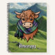 Caricature de vache de Highland portant le foulard de tartan Armstrong. Paysage arrière - plan personnalisé sur les deux couvertures. Texte personnalisé.