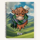 Caricature de vache de Highland portant le foulard de tartan de Blair. Paysage arrière - plan personnalisé sur les deux couvertures. Texte personnalisé.