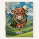 Caricature de vache de Highland portant le foulard de tartan de chasse de Bruce. Paysage arrière - plan personnalisé sur les deux couvertures. Texte personnalisé.