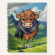 Caricature de vache de Highland portant le foulard de tartan de chasse de Leslie. Paysage arrière - plan personnalisé sur les deux couvertures. Texte personnalisé.