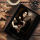 Un vampire victorien avec une seule larme rouge de sang tandis que son portrait de loup-garou est assis derrière elle. Amour perdu.