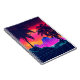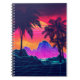 Neon glowing grid rocks and palm trees, futuristic landscape design
