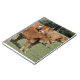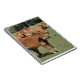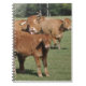 Un carnet avec une photo d'une vache brune d'or du Limousin avec des klaxons, le léchant est veau, alors que le veau lèche son propre nez.