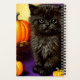 Carnet avec un chaton Halloween vintage ! Un chaton noir moelleux pose à côté des citrouilles contre un arrière - plan violet. Un cadeau amusant pour les fêtes d'Halloween et les amoureux de les chats!