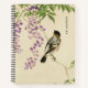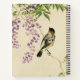 OEuvre d'aquarelle vintage, imprimée au japonais (logée à Rijksmuseum, NL), représentant une branche florissante de lilas acia et un oiseau (un moineau) qui regarde vers le haut. Fleurs Lilac / violet, feuilles verts, papier écru vintage, oiseau brun. Nom personnalisé écrit dans une police de style hiéroglyphe. Un cadeau très mignon et romantique pour quelqu'un qui aime les oiseaux ou les peintures japonaises vintages.