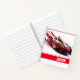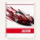 Ce carnet est montré avec une photo d'art de voiture de sport rouge. La couleur classeur est Gris L'exemple de nom personnalisé Customise cet article et change le nom en votre nom. Image sous licence