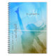 Bloc-notes pour volley-ball féminin sportif avec une scène conceptuelle d'un jeu de volley-ball à la plage, avec le texte personnalisé qui dit : "sable, surf et ciel ... et volleyball" - les graphismes mélangés de volleyball comprennent un volleyball et un volleyball féminin silhouetté sautant à un filet de volleyball superposé sur un arrière - plan en dégradé de couleur turquoise, blanche et brune clair qui représente un ciel bleu clair, le surf océanique et une plage de sable - personnaliser avec son monogramme et son nom - par katz_d_zynes