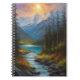 Capturez l'essence de la nature sauvage dans ce carnet enchanteur en spirale. Plongez-vous dans l'art numérique qui présente un ruisseau serein qui descend en cascade sur des collines rocheuses. Une pinède fleurit, et des montagnes enneigées à l'horizon peignent un paysage de beauté tranquille. Ce carnet conserve le charme de l'allure de la nature dans ses pages.