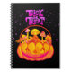 C'est la conception de la fête de l'halloween qui célèbre la prochaine Halloween. Cette kawaii dessinée à la main et illustration amusante présente un joyeux halloween, des champignons citrouilles et un tour ou un régal.