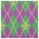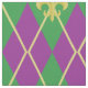 A harlequin pattern of green and purple is transformed into a playful argyle with an overlay of gold diamond outlines and fleur de lis, creating a fun and colourful pattern perfect for any New Orleans influenced Mardi Gras celebration.
