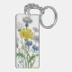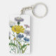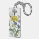 Old-fashioned botanical illustration of cornflowers in blue, yellow and white.