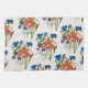 Old-fashioned botanical illustration of spiderwort and daylily in blue, purple and orange