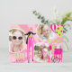 Sweet and fun carnival theme thank you card with 3 photo inserts. In pinks and lime green.