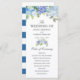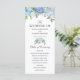 Une carte de programme de mariage sur le thème des fleurs de bleu clair unique et adaptée spécifiquement à votre futur mariage.