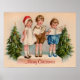 The original image is from the 1800s, showing three charming children singing Christmas Carols as if in a Christmas show at school. Creates a great vintage Christmas poster.