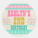 © 2015 Socialite Designs. Vintage horse carousel stickers for a girl's birthday party. Our design incorporates a star border and customizable text in colours of pink, turquoise and gold.