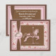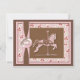 Our carousel horse in pink has plaid shades of pink inside the horse with flowers in shades of pink on the matting. The circle in front of the lined ribbon says baby shower.