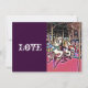 These unique carousel wedding invitations feature brightly coloured pink and purple carousel horses going around the merry go round at the carnival. It has the word "LOVE" below the horses. The backside of the invitation has a different carousel design and dark purple background with the word "Love" These wedding announcements are perfect for carousel themed or carnival themed weddings. Matching carousel wedding RSVP cards and custom postage stamps also available: