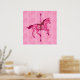 Mixed media digital graphic of a classic carousel horse, in mixed patterns, against an arabesque tiled background - Deep Fuchsia and pale pink, accented with burgundy