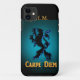 "Carpe Diem" Iphone case with black and blue Lion.