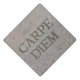 * graphic: captures the look of letters chiseled into stone. saying (ancient Roman/Latin) meaning: Seize the Day, enjoy the moment, don't waste time