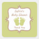Cet autocollant carré vert sucré présente une adorable paire de pieds vert bébé dans un cadre marron clair, avec votre texte dans un front marron assorti. Coordination des produits disponibles.
