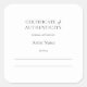 Autocollant Certificat d'authenticité en noir et blanc et personnalisable pour artistes et galeries. Choisissez l'option Papier Matte pour une écriture facile.