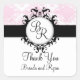 Chic Vintage rose et blanc Damas avec Double Monogramme Initiales Merci Mariage Favor Sticker. Conception par Elke Clarke ©2011.Personnaliser avec vos initiales et noms monogrammes