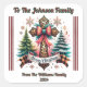 A cheerful holiday sticker adorns a neatly wrapped gift, featuring vibrant colors and a festive design. Surrounded by pine branches and wrapped presents, it captures the joyful essence of Christmas celebrations, making every gift extra special.
