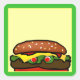 Illustration graphique d'un hamburger amusant avec les yeux d'olive sur un autocollant d'étiquette de nom. ©2012charmainepaulson